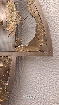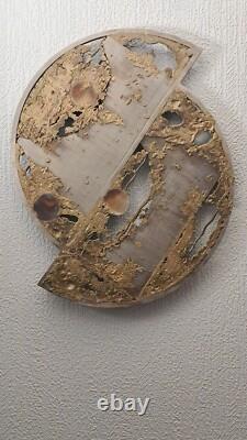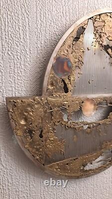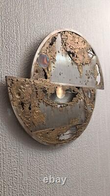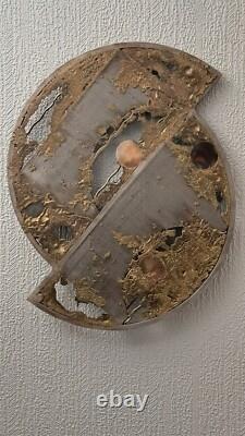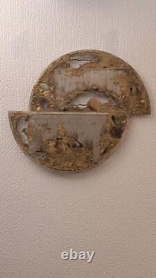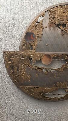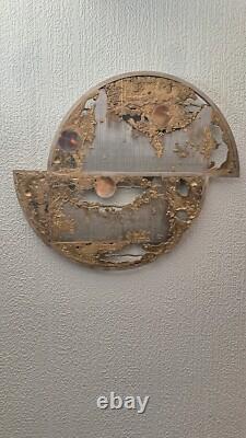 SCULPTURE BAS RELIEF MURAL IN BRONZE AND STAINLESS STEEL BY JEAN DE PREZ FROM THE 1970S. POSSIBILITY TO PLACE IT IN 4 POSITIONS, SEE THE FIRST 4 PHOTOS. DEPENDING ON THE LIGHTING AND THE DIRECTION OF YOUR GAZE ON THE WORK IN THE ROOM, THE SHINE VARIES, THE MAT BECOMES SHINY AND VICE-VERSA. SIGNATURE EMBOSSED ON ONE SIDE, SEE THE 8TH PHOTO. WHILE CONTEMPLATING THIS WALL SCULPTURE, I THINK OF SPACE, OF A CELESTIAL BODY.