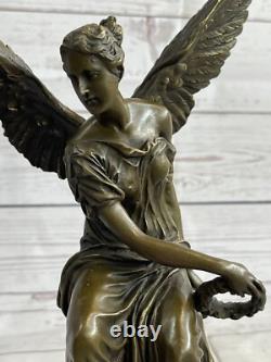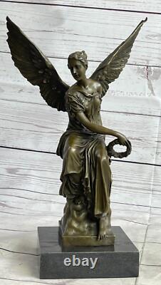 Inspired by the representations of ancient Roman and Hellenistic art, this sculpture captures the grace and elegance of winged angels. The intricate details of the flowing robe and the delicate feathers of the angel's wings showcase the exceptional craftsmanship of the artist.With a contemplative expression, the angel holds a laurel crown, symbolizing victory and honor. As she prepares to bestow the crown upon the deserving successor of a great battle, her presence exudes a sense of divine authority and benevolence.