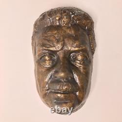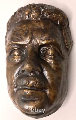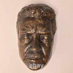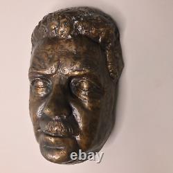 Bronze Bust Sculpture Mask Man with Mustache Art Deco Vintage Antique