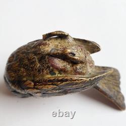 Dimensions: 5.5 x 3 x 6 cm. There are remnants of cold paint and a small piece of the legs is missing, as shown in the photos. The photos are an integral part of the description. Shipping worldwide is possible; please contact me beforehand to adjust the shipping costs.