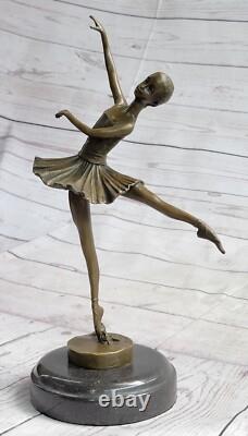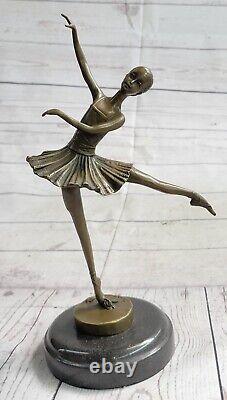 Discover the artistic talent of dance with this exquisite bronze sculpture of a prima ballerina. This talented dancer takes center stage, showcasing her exceptional agility, balance, and flexibility. With a graceful extension of her long leg, an arched spine, and an elegant pose, she captivates the audience with her performance. Made with meticulous attention to detail, this sculpture captures the beauty and precision of ballet.