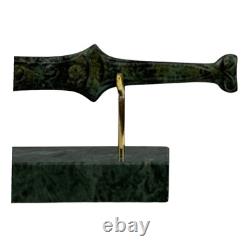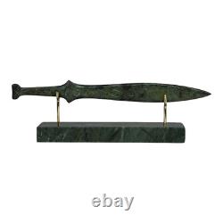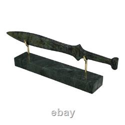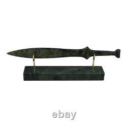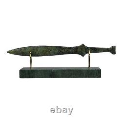Small Spartan Sword - ancient Greek art sculpture in bronze metal with green oxidation. Embrace history with our stunning Spartan sword sculpture, made from genuine bronze in Greece. Featuring a beautiful green oxidation finish, this piece captures the essence of ancient Greek art, making it a striking addition to any decor or collection. Height (with base): 8 cm. Length: 26 cm (10.24 inches).