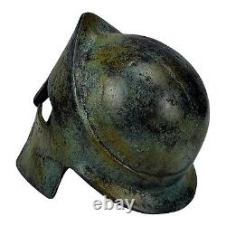 Ancien casque grec spartiate sculpture d'art en métal bronze véritable 4,72 po. 12 cm (4.72 pouces). 14 cm (5.51 pouces). 960 gr (2.11 lb).