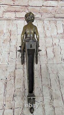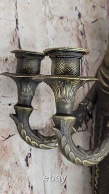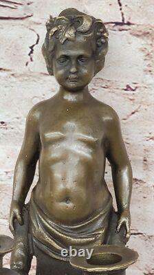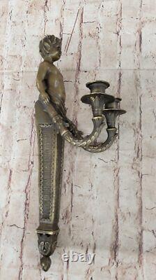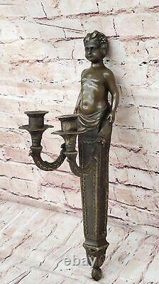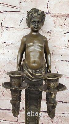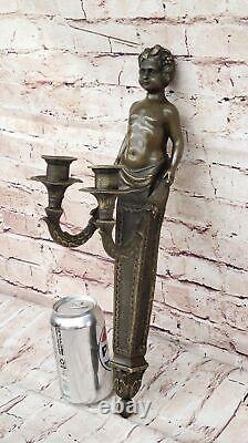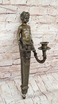 Cette sculpture est en parfait état. Bronze Dimensions : Hauteur 17 1/2" X Largeur 5". Ce bougeoir mural captivant est un ajout unique et artistique à tout décor intérieur. En son centre, un jeune garçon occupe la vedette, sa silhouette transformée en un bougeoir fonctionnel et accrocheur. Le garçon est assis avec ses jambes gracieusement courbées en forme de U, offrant l'endroit idéal pour que vos bougies brillent. La forme à moitié nue du garçon est recouverte d'un tissu qui drape élégamment la moitié inférieure de son corps. Juste en dessous de lui, une longue pièce en forme d'échelle s'étend vers le bas, ajoutant un élément visuel intrigant au design. Ce bougeoir est loin d'être ordinaire ; c'est une ouvre d'art qui non seulement accueillera vos bougies mais décorera également votre maison d'une manière vraiment unique.Fabriqué avec la plus grande attention aux détails, ce bougeoir est fait à 100% de bronze et porte la signature du célèbre artiste Aldo Vitaleh. La méthode de la cire perdue, une technique de moulage ancienne et complexe, a été utilisée pour créer cette pièce exceptionnelle. Qu'il soit placé dans un salon, une salle à manger ou tout autre espace, ce bougeoir mural sera certainement un déclencheur de conversation et un ajout étonnant à votre décoration intérieure. Coller le lien dans une fenêtre de navigateur. Qu'il soit placé dans un salon, une salle à manger ou tout autre espace, ce bougeoir mural sera certainement.