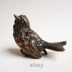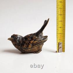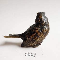 Ancienne sculpture en Bronze de Vienne peint à froid, marquée et signé Geschützt. Fin du XIXe siècle, vers 1900. Dimensions: 5,5 x 3 x 6 cm. Reste de peinture à froid et il manque un petit bout des pattes je pense voir photos. Les photos font entièrement partie du descriptif.