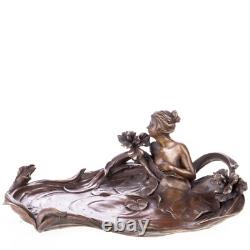 Si vous avez besoin de quoi que ce soit, n'hésitez pas à nous contacter. Art Nouveau bronze sculpture of a woman bathing with water lilies. Signed Sculpture, made of exclusive material-bronze, very precisely, with attention to the smallest details.