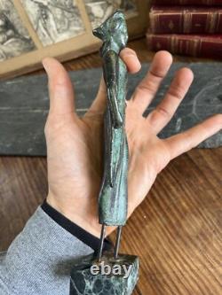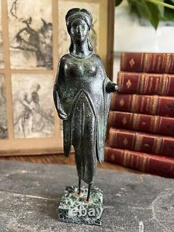 Statuette Bronze & Socle Marbre Sculpture Artemis Art Grec. Reproduction de statue présente en musée. Dimensions h 22.5 cm.